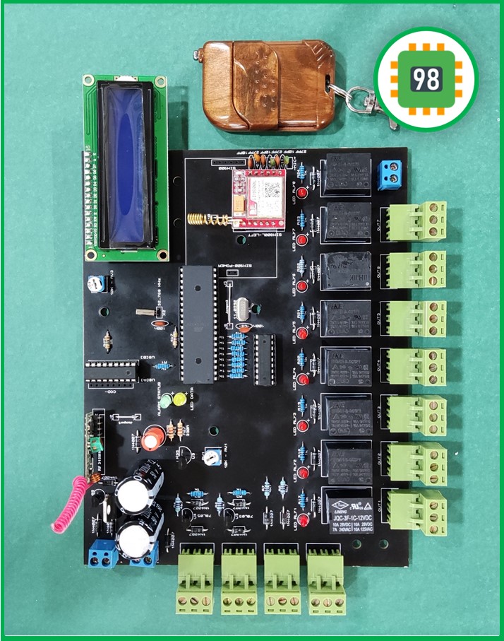 :: تعداد رله خروجی: 8 عدد ( 1 خروجی جهت اتصال آژیر – 1 خروجی جهت کنترل دمای بالا – 1 خروجی برای کنترل دمای پایین – 5 خروجی برای کنترل وسایل برقی)